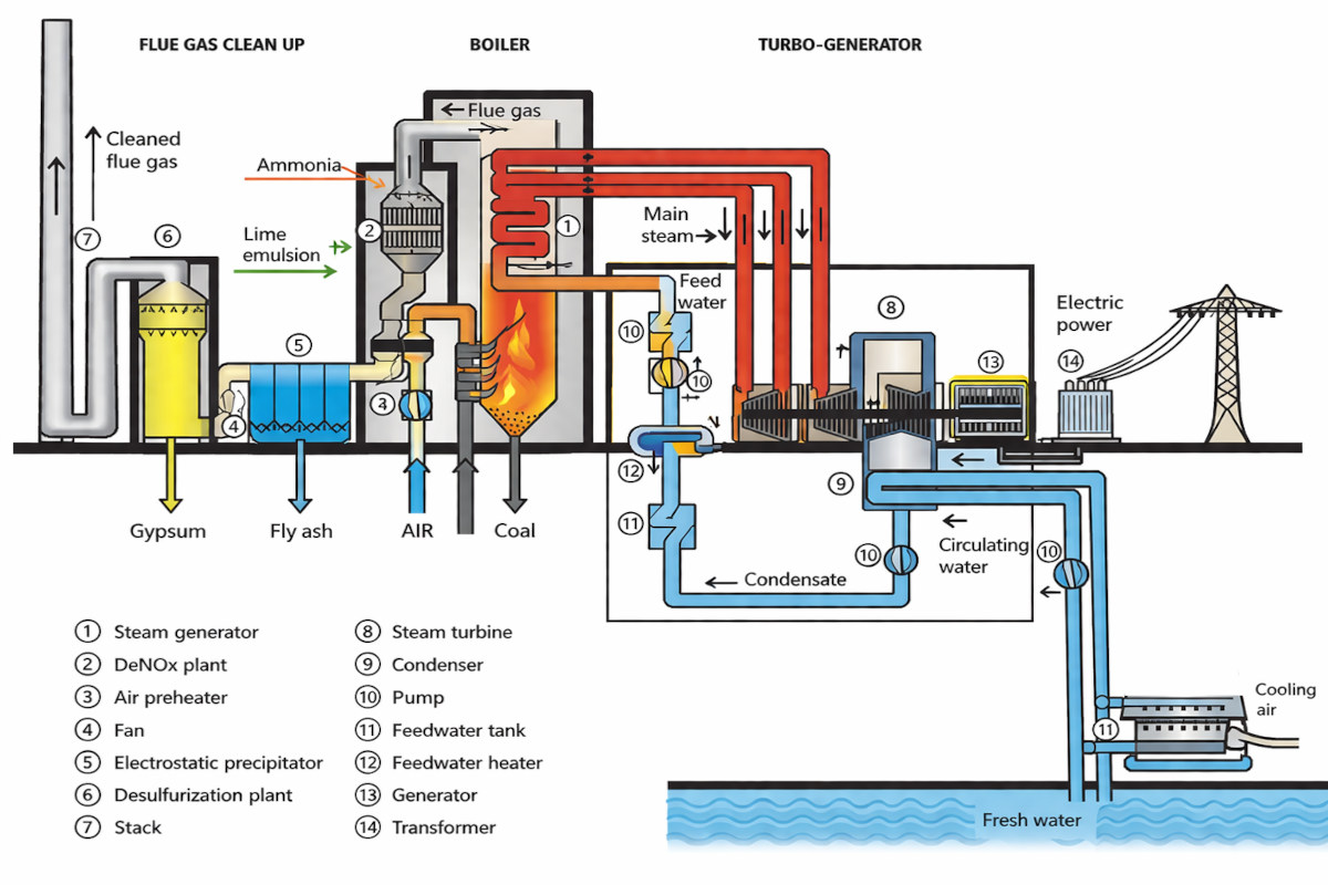 Nel funzionamento di una centrale termoelettrica a carbone il primo livello del processo è costituito dall’approvvigionamento del combustibile, trasferito al sito produttivo tramite navi portarinfuse provenienti dai bacini estrattivi.