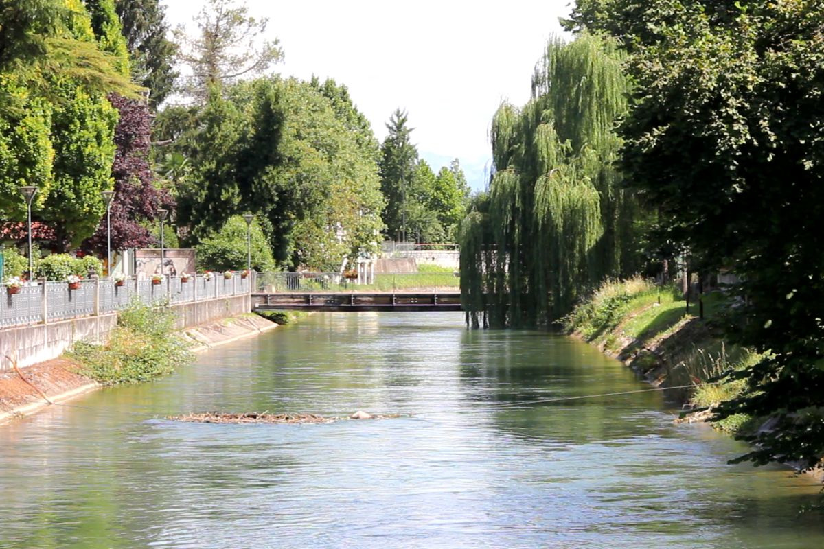 Nel Monfalconese, la transizione verso assetti produttivi più articolati si accompagnò dunque alla definizione di un’infrastruttura idraulica destinata a incidere in modo strutturale sull’organizzazione del territorio. Nel 1873 venne istituito, con provvedimento del capitanato distrettuale competente, il Consorzio Acque dell’Agro Monfalconese, nel cui ambito maturò l’ipotesi di un canale principale impostato tra Sagrado e Monfalcone, con attraversamento dei territori di Fogliano e Ronchi dei Legionari, e con previsione di un prolungamento verso l’area di Porto Ròsega. L’opera assunse progressivamente carattere promiscuo, con finalità irrigue e con potenzialità di supporto a funzioni industriali e fu realizzata tra fine Ottocento e i primi anni del Novecento, con un ruolo determinante attribuito ad Antonio de Dottori degli Alberoni, promotore consortile e figura attiva negli organismi agrari del territorio.