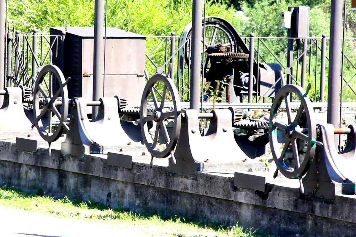 La pendenza lungo il tracciato costituì un ulteriore parametro determinante e, nel tempo, rese possibile la realizzazione di impianti idroelettrici in corrispondenza di salti distribuiti, con una caduta utile complessiva indicata in fonti locali nell’ordine di alcune decine di metri. In termini funzionali, l’assetto implicò la coesistenza di due esigenze: continuità e regolarità dei livelli per l’irrigazione, concentrazione della caduta e corretta restituzione per l’uso energetico, con dispositivi di dissipazione e controllo necessari a evitare le instabilità e gli eventuali rigurgiti.
