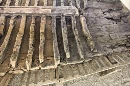 Degni di nota, infine, un segno graffitato su un madiere di prua, recante un XV e un altro numero, il IV, impresso probabilmente a fuoco in una componente del fasciame: due segni grafici d’incerta interpretazione vista la mancanza di relazione con il numero degli elementi lignei di quest’imbarcazione dalla fascinosa storia, che un tempo solcò la placida marina del lacus Timavi, facendo la spola tra le insulae costiere e un contesto abitativo e produttivo connotato da mirabili tratti di contemporaneità.