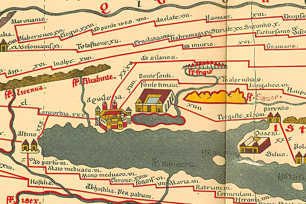 Nota fin dal Cinquecento con il nome di Tabula Peutingeriana e oggi conservata a Vienna come Codex Vindobonensis 324, la Tabula Militaris Itineraria Theodosiana costituisce l’unica carta stradale romana giunta fino a noi, sebbene attraverso una copia medievale del XII secolo. L’originale, probabilmente redatto tra III e IV secolo d.C. con aggiunte successive, era composto da dodici fogli di pergamena cuciti a formare un rotolo lungo circa 6,80 metri e alto 35 centimetri, sul quale erano rappresentate in forma schematica le vie che univano l’Impero dalle Colonne d’Ercole fino all’estremo Oriente. In quanto carta itineraria, la mappa privilegia la continuità longitudinale dei tracciati rispetto alla fedeltà geografica, deformando terre e orientamenti per agevolarne la lettura e riservando spazi più ampi ai territori centrali, come la Penisola italiana.