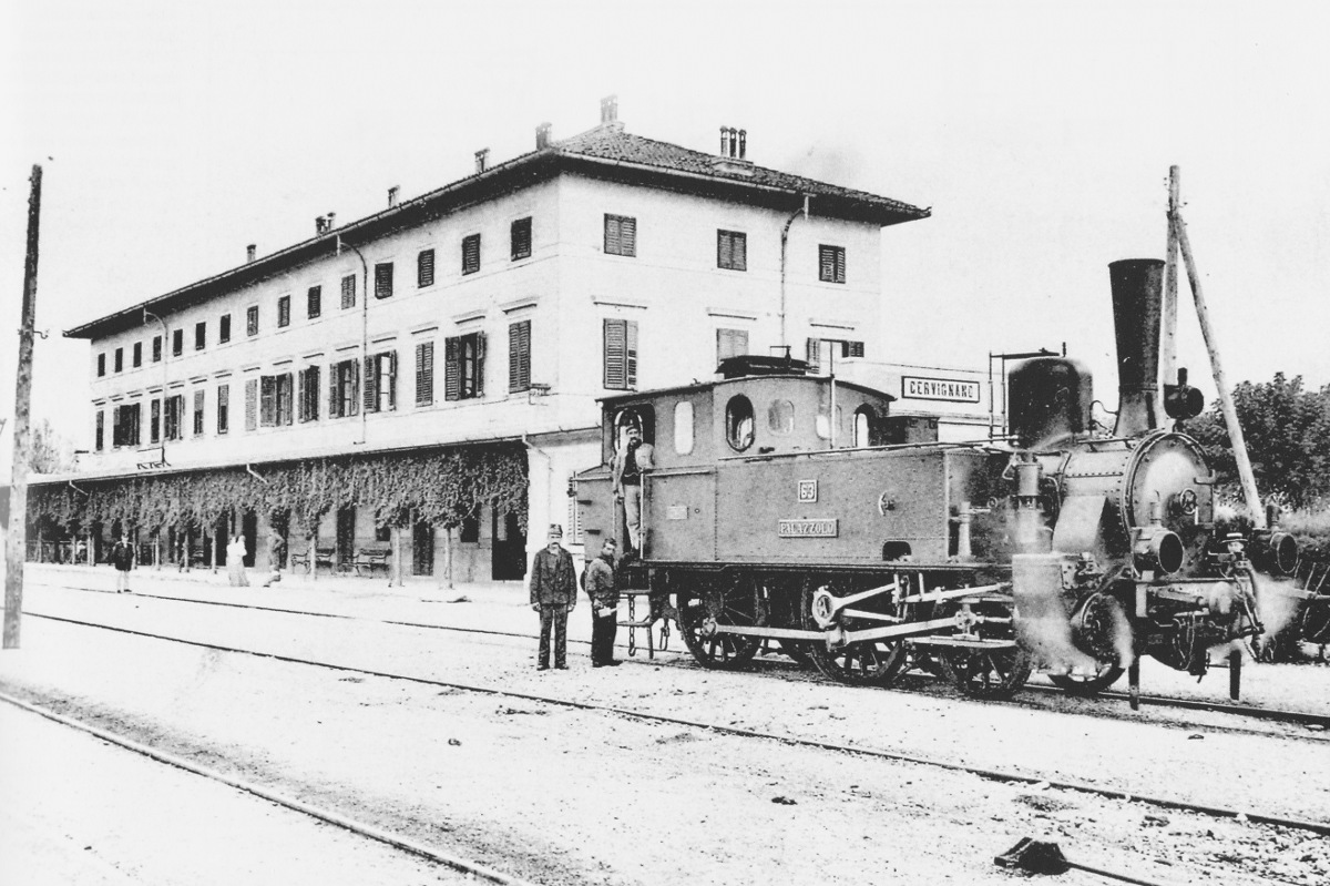 Nel tardo ‘800 fuorno inoltre consolidati i collegamenti lungo la fascia basso-friulana. In tale ambito si collocò l’apertura della linea Monfalcone-Cervignano nel 1894, cui seguì nel 1897 l’attivazione del segmento Cervignano-San Giorgio di Nogaro, che contribuì a definire una continuità più organica tra l’area veneziana e l’asse verso Trieste attraverso la pianura costiera, con effetti di rafforzamento della funzione di smistamento del nodo cervignanese.